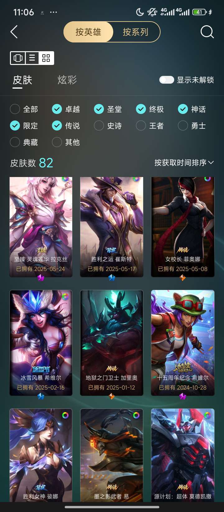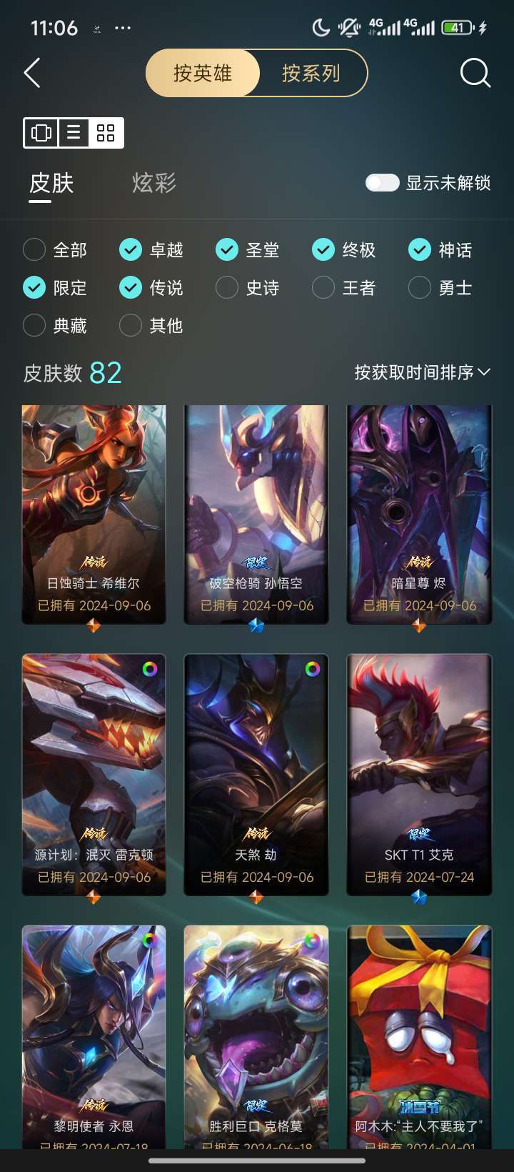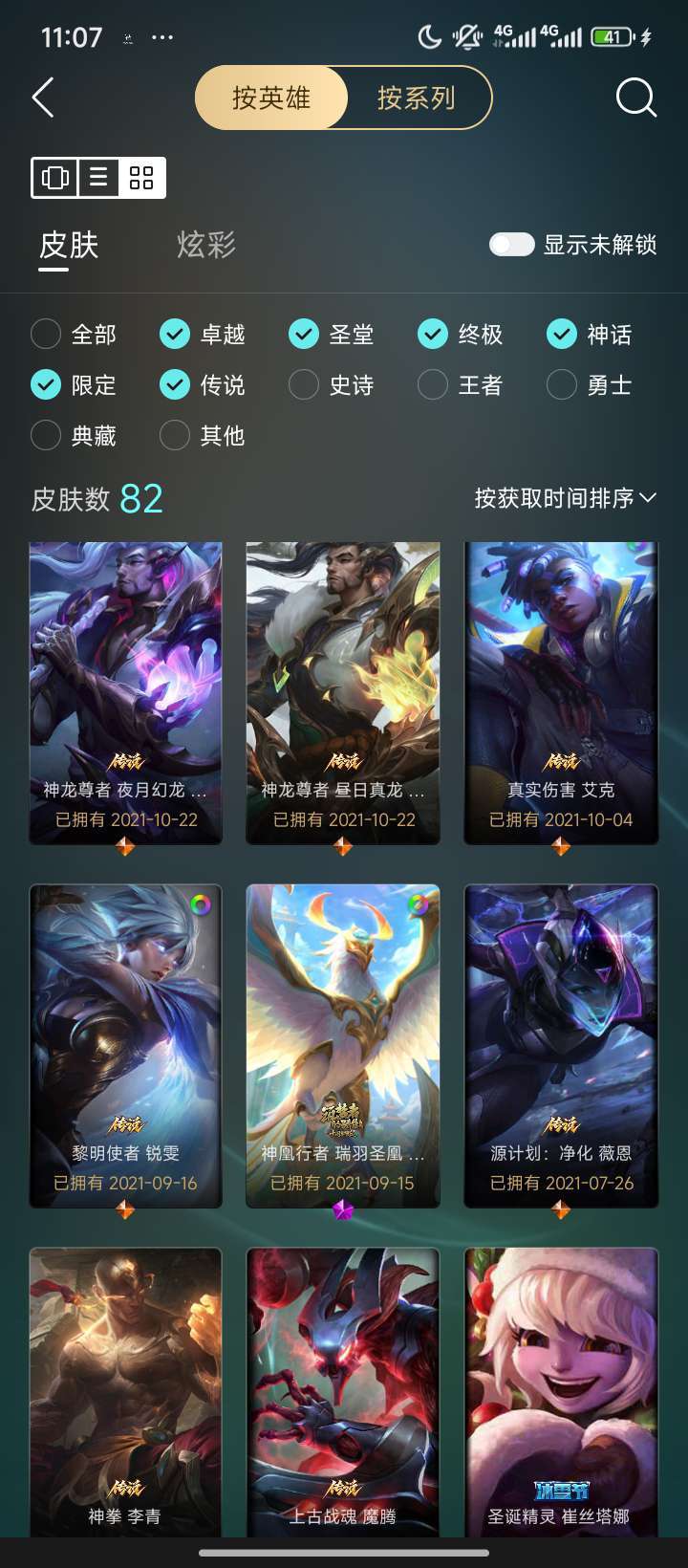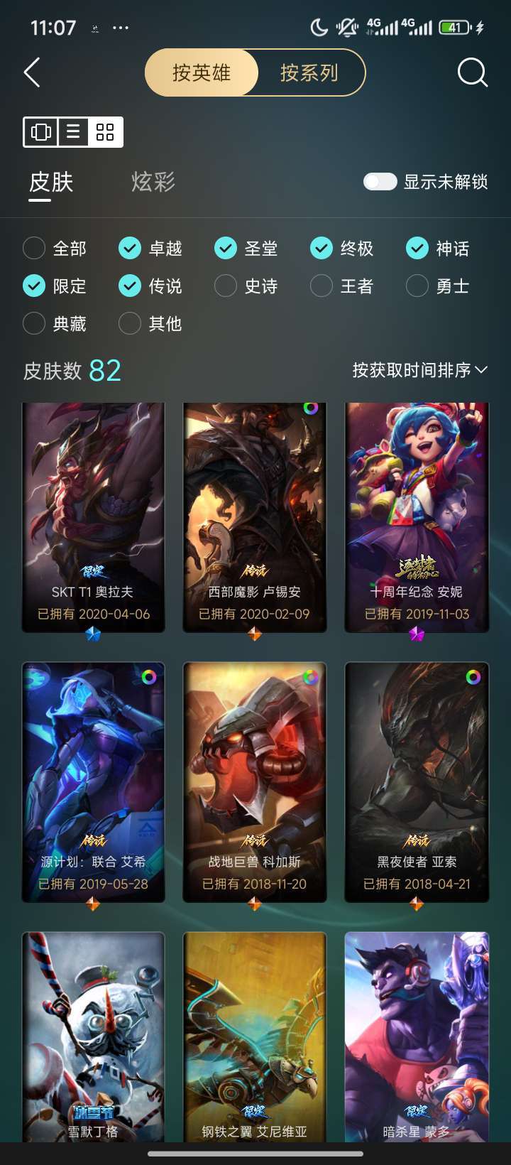 装备描述:基本热门英雄的热门皮肤我都有 如果你要玩一个皮肤不老气 又每个英雄都想玩的号这个就对了