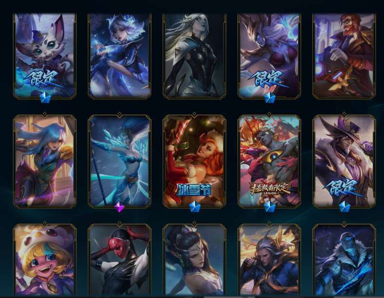 【联盟四区比尔吉沃特】翡翠钻石号,软辅ad打野皮肤偏多,有精粹玩什么英雄自己买。