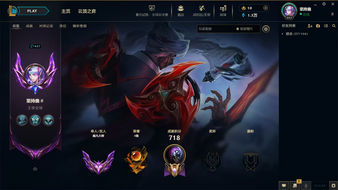 装备描述:艾欧尼亚大师号撞车专用 至臻杰斯冰女剑魔 海克斯皇子 可排位全英雄