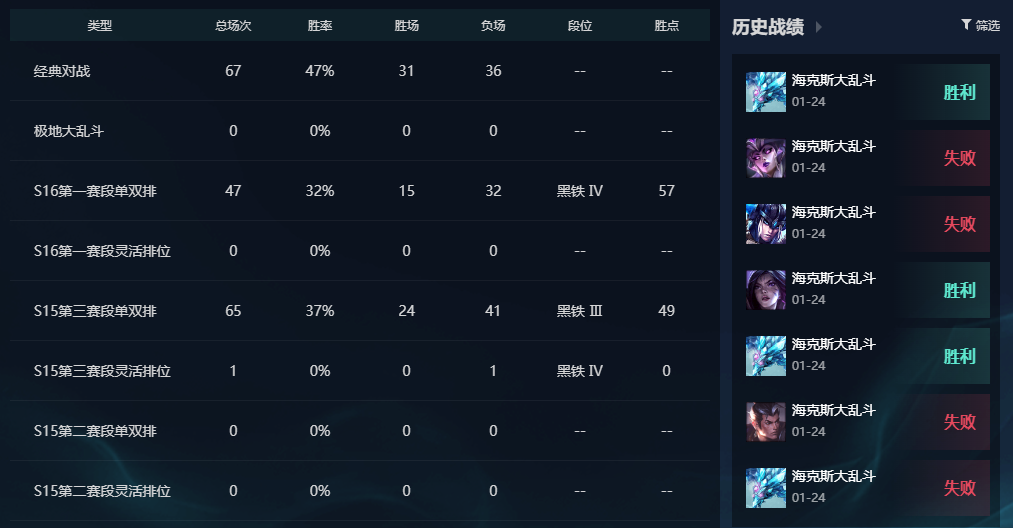 班德尔城❤️可排位❤️S16赛季单双黑铁❤️灵活黑铁❤️海克斯乱斗负胜率❤️极品虐菜号