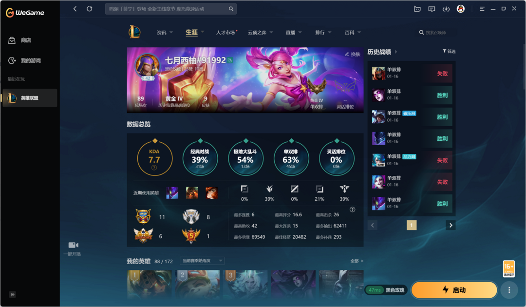 段位:34级 不屈白银II