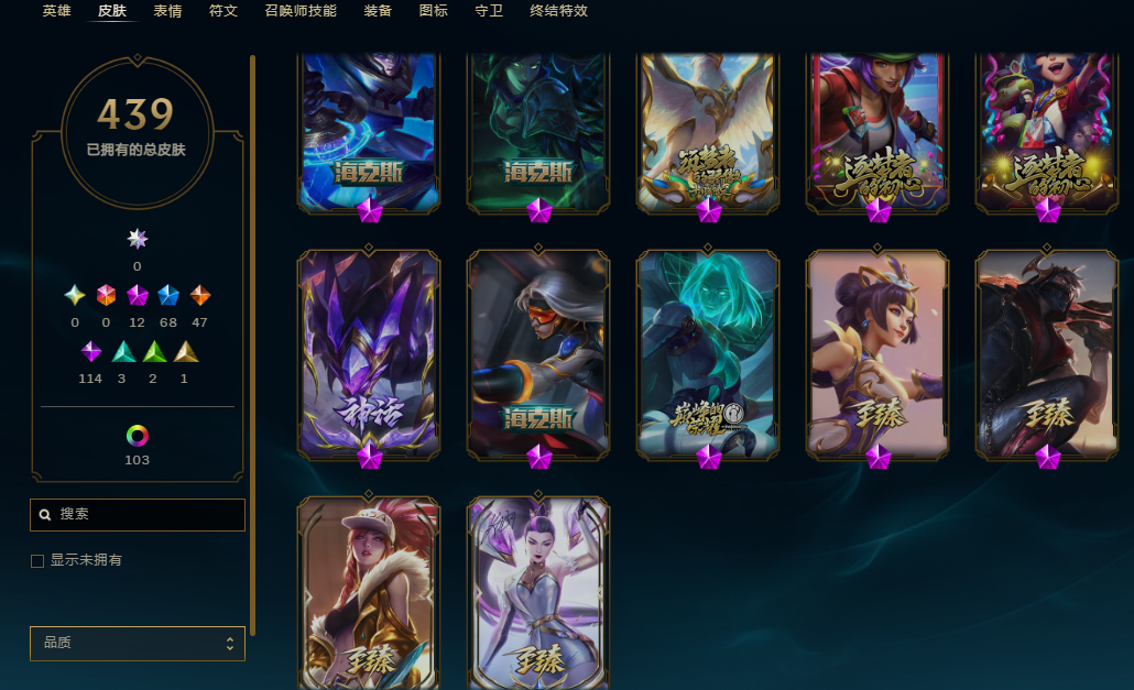 500P,439原皮,12神话,68限定,神话棋盘