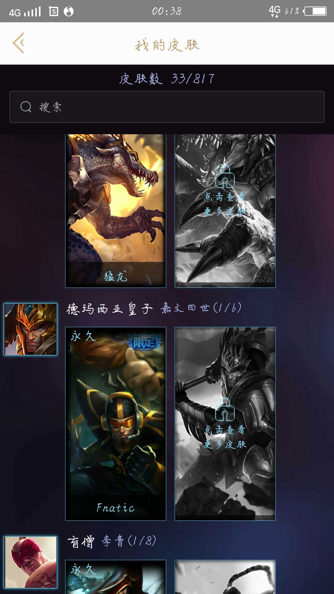 这个号四个限定皮肤三个史诗皮肤一个传说皮肤 外加一个123级