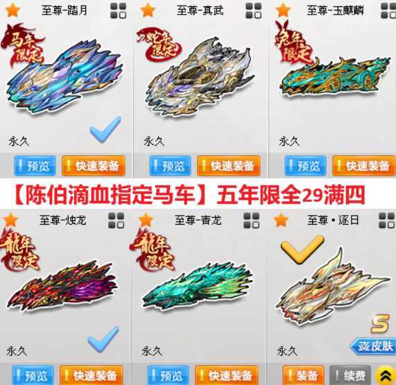 五年限【首发马车-至尊踏月❤️真武❤️玉麒麟❤️烛龙❤️青龙】满改满四级/逍遥屠龙奥丁刘备吕布等
