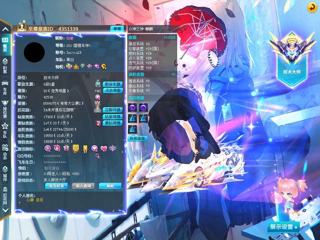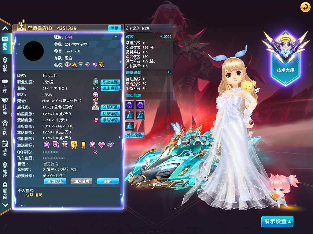 装备描述:飞车靓号,男装女装衣柜号,众神之神麒麟皮肤幽兰皮肤全29双四,宠物甜心公主强化10禁止利用账号进行开挂、使用辅助违规软件诈骗等违规操作。