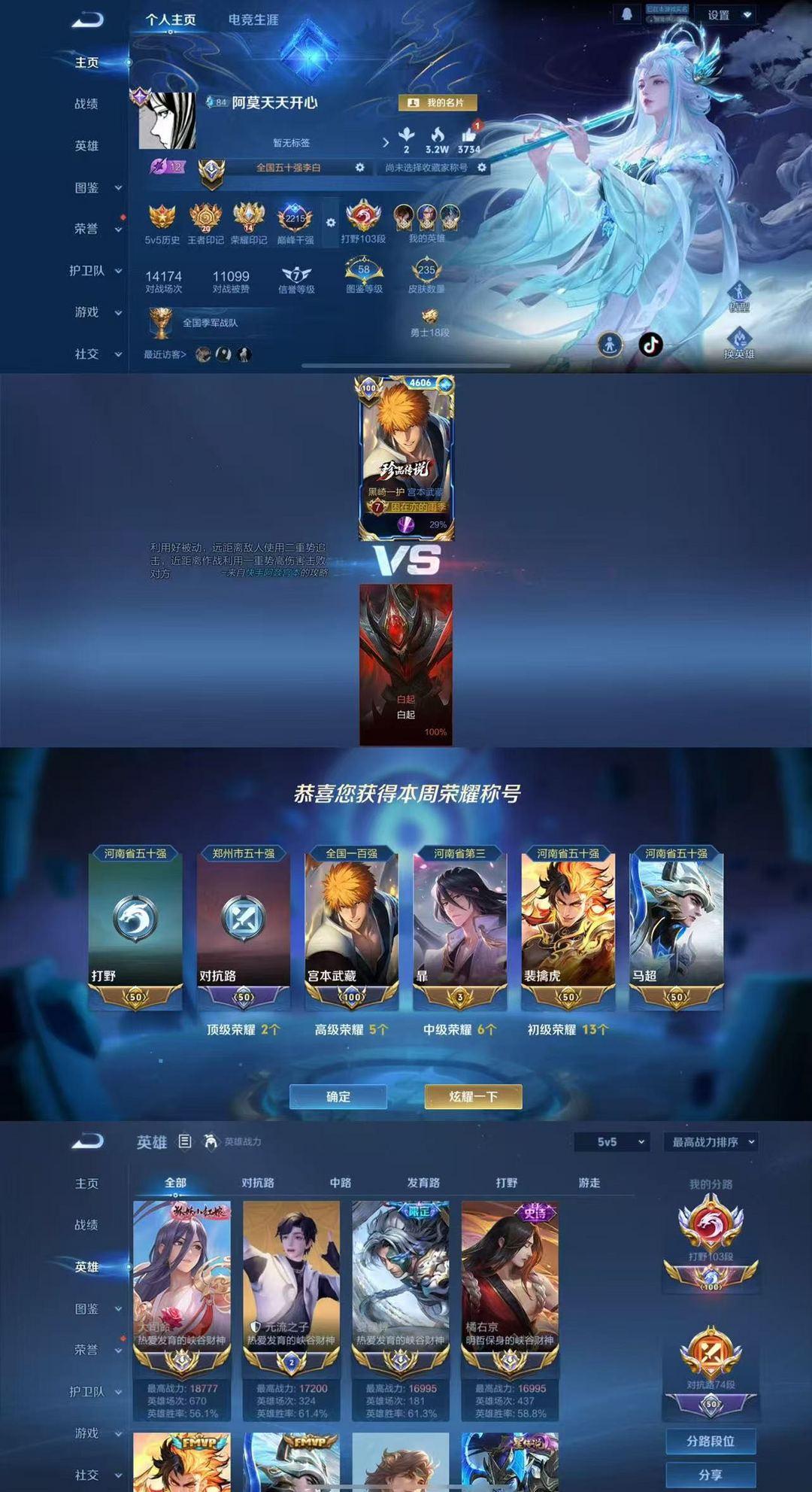 巅峰万强⭐国标宫本武藏国服宫本武藏 暃在榜⭐百段打野105段⭐皮肤多多历史多国服禁巅峰
