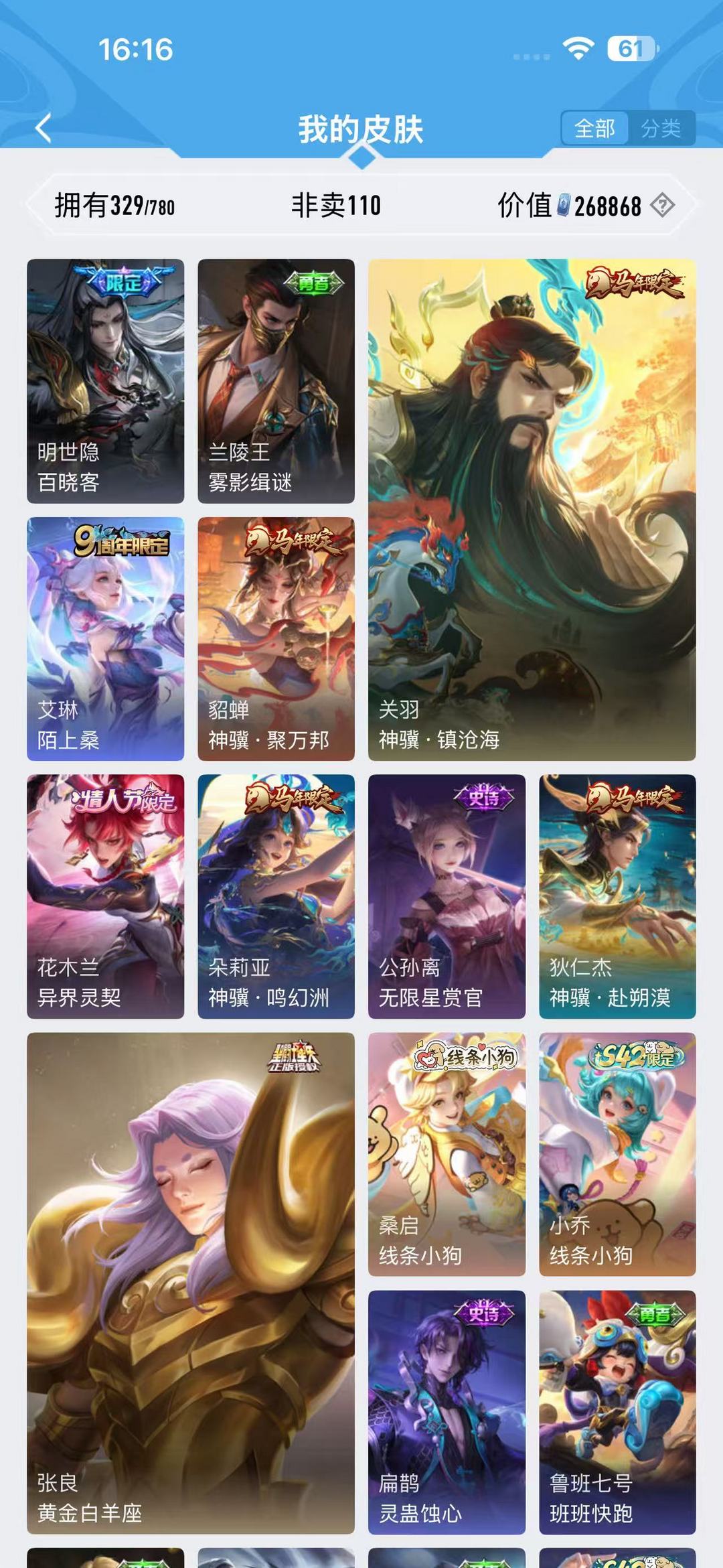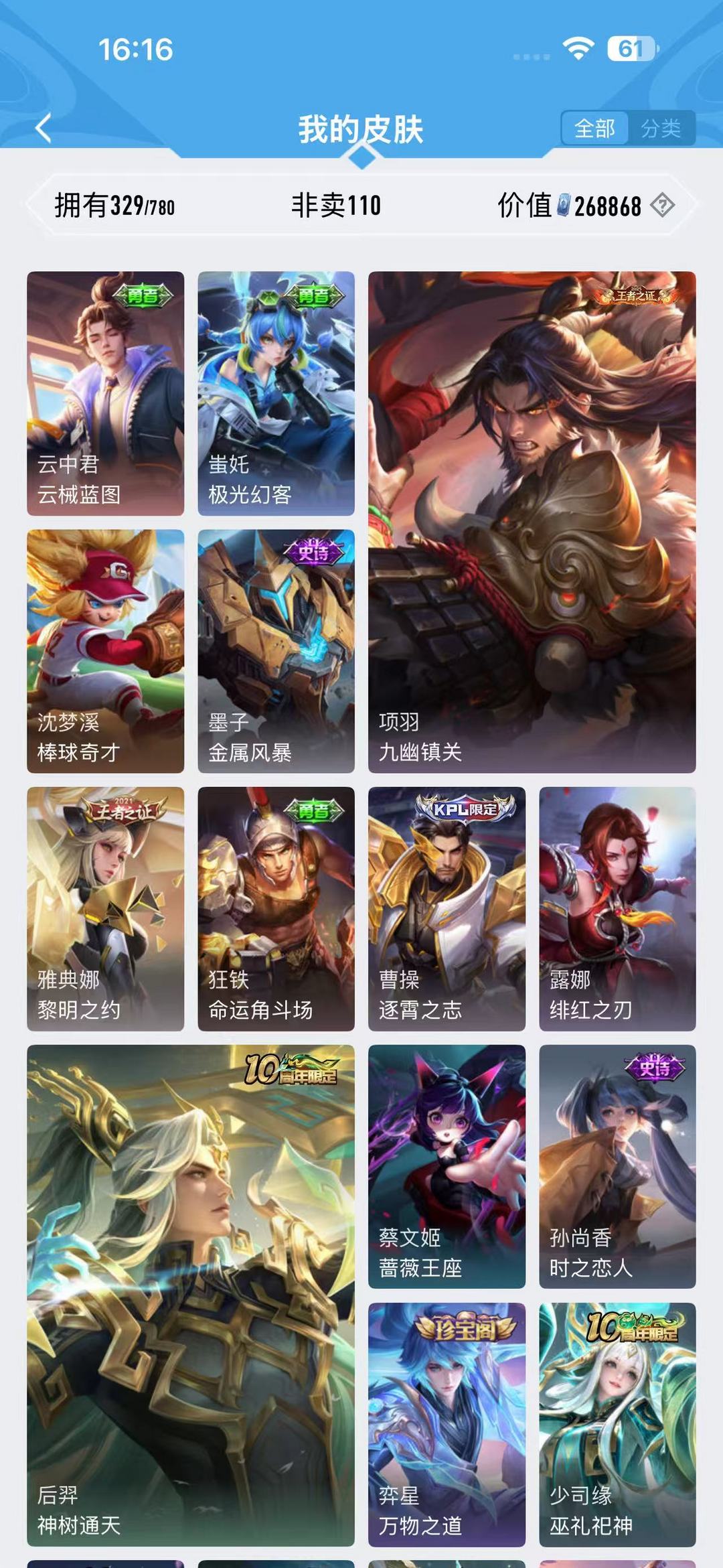 1折建议包天 v8 329皮 马年限定狄仁杰关羽貂蝉多利亚神鉴启示录 炽翼辉光 最初的交响 时雨天司