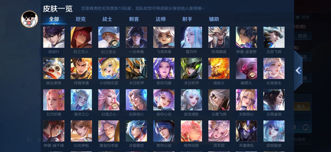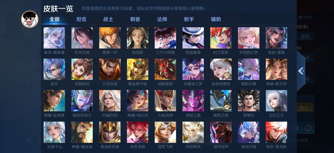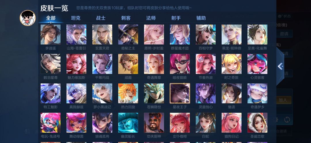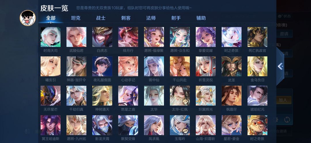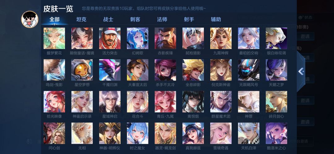打野45段历史7金标V10无双贵族753皮满典藏满无双️满年限,全新皮肤全部解锁