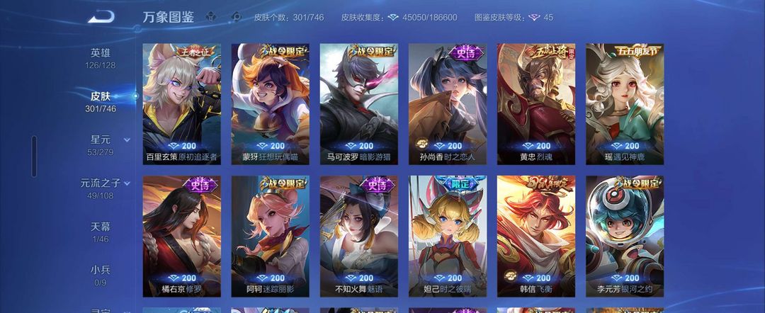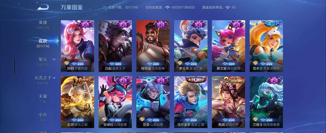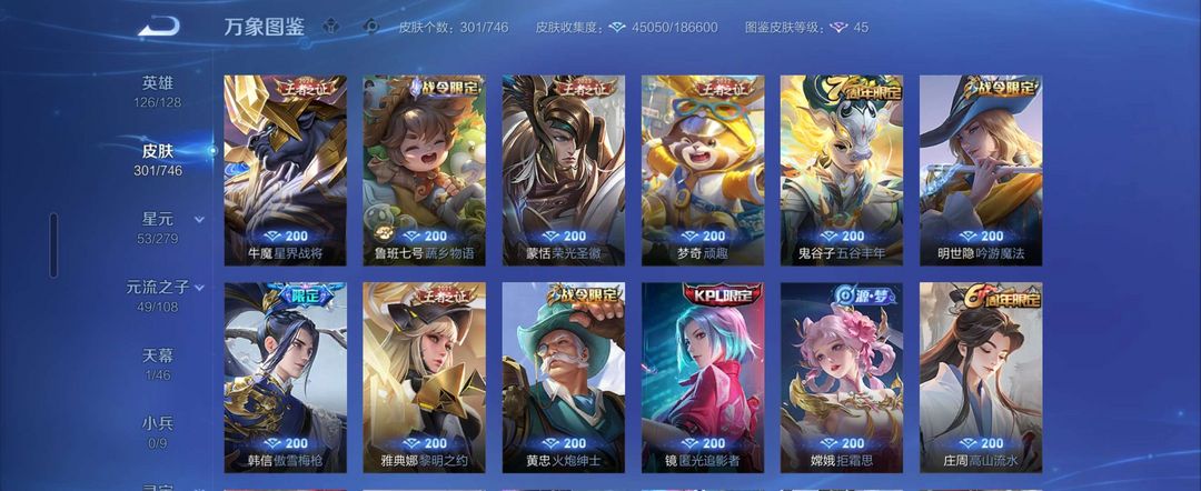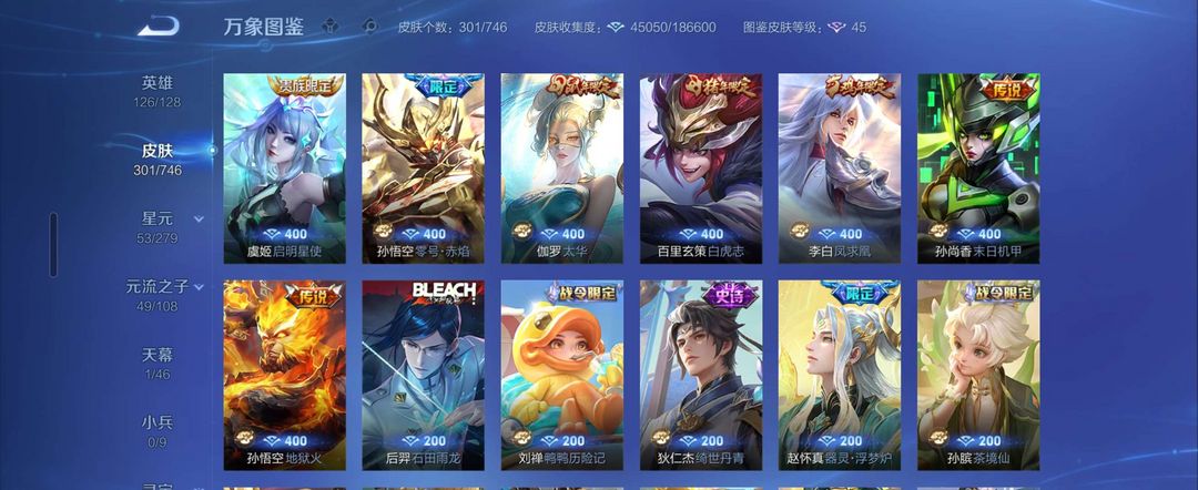 装备描述:高质量v8 301皮 射手打野皮肤较多 传奇印记 限定皮肤较多 喜欢本账号请点 ☆收藏☆ 方便下次租用,谢谢光临惠顾!