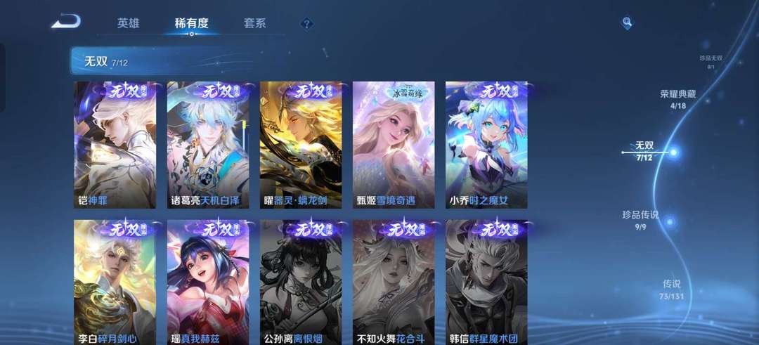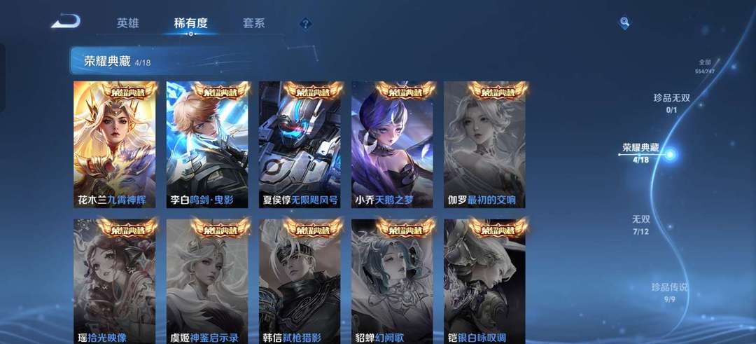 无双贵十,552个皮肤,荣耀王者,7无双皮,4荣耀典藏皮