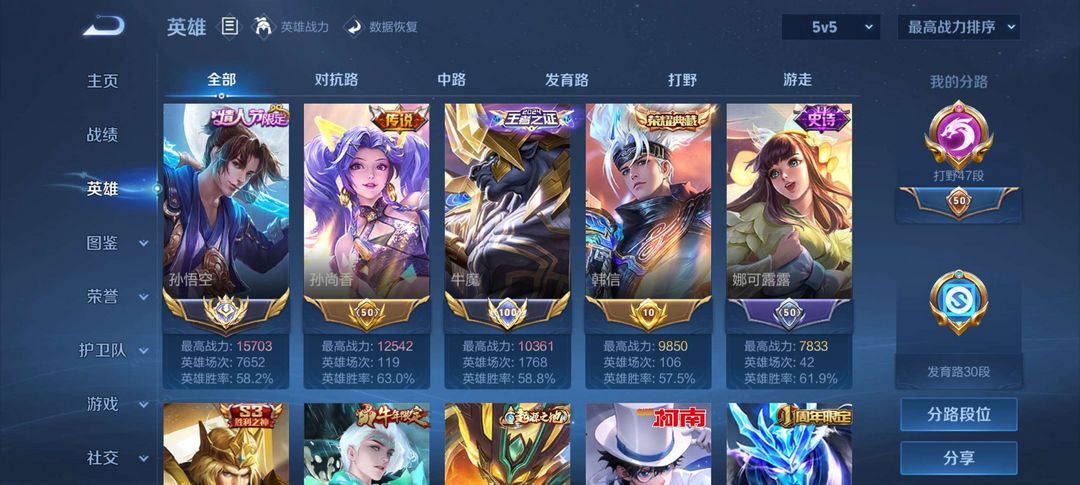 国服第一孙悟空大国标孙悟空小国标牛魔亚瑟,极多典藏极多皮肤,不租号的人后悔一辈子