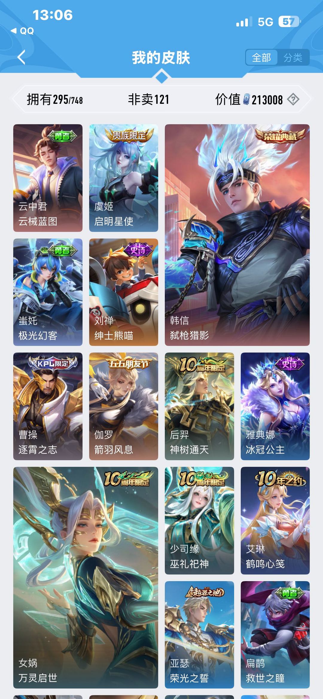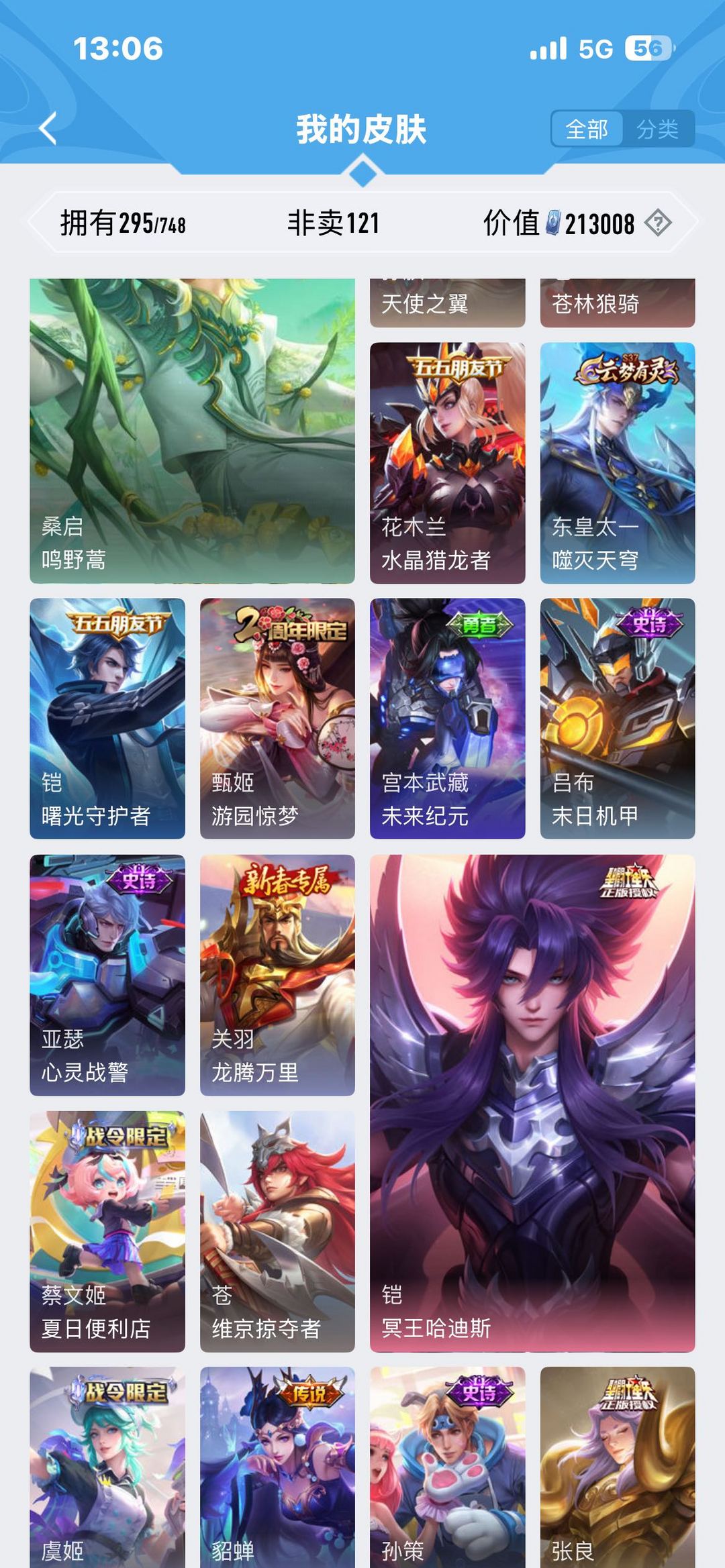 【v8 295皮】【极品打野男号】【11传说 一典藏】一天幕⚡️弑枪猎影⚡️至尊宝⚡️冥王哈迪斯