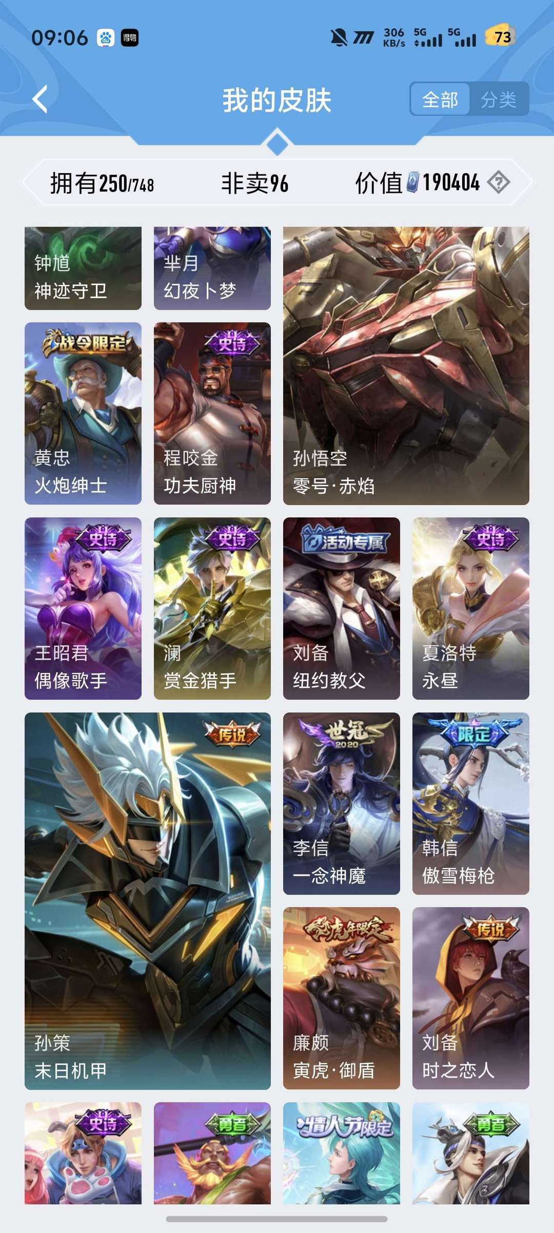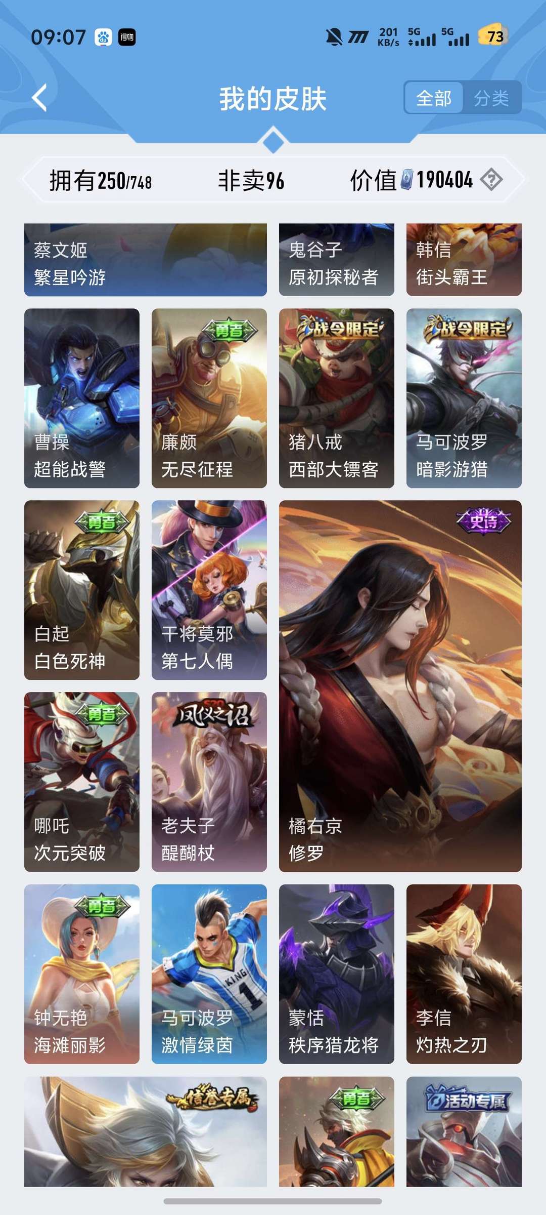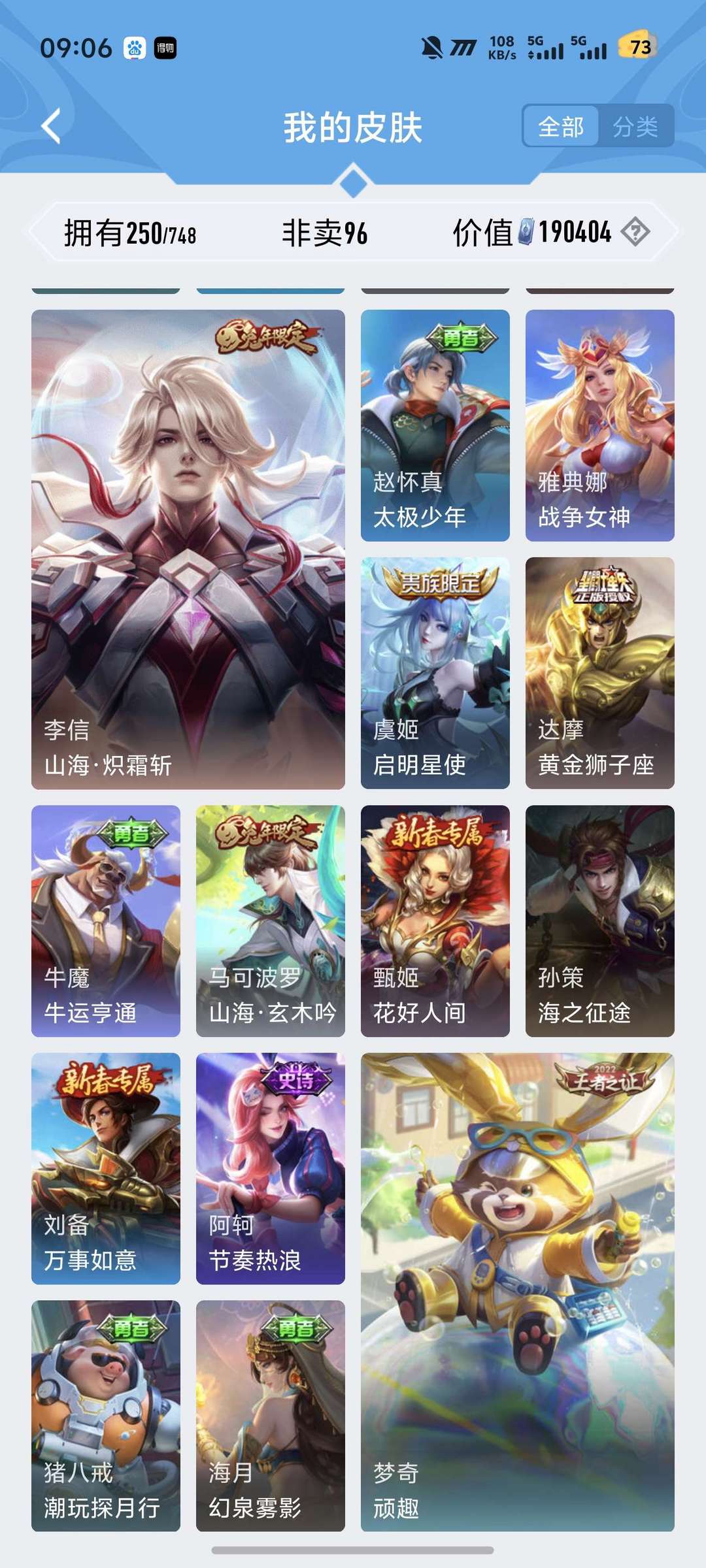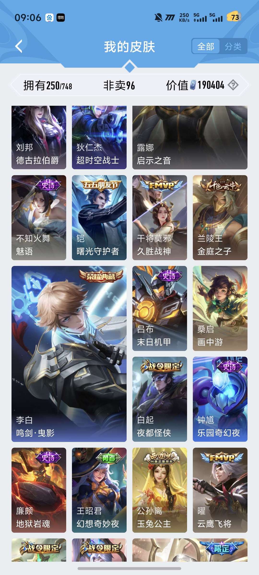 李白典藏 很多皮肤 可排位 禁止开挂账号已备案