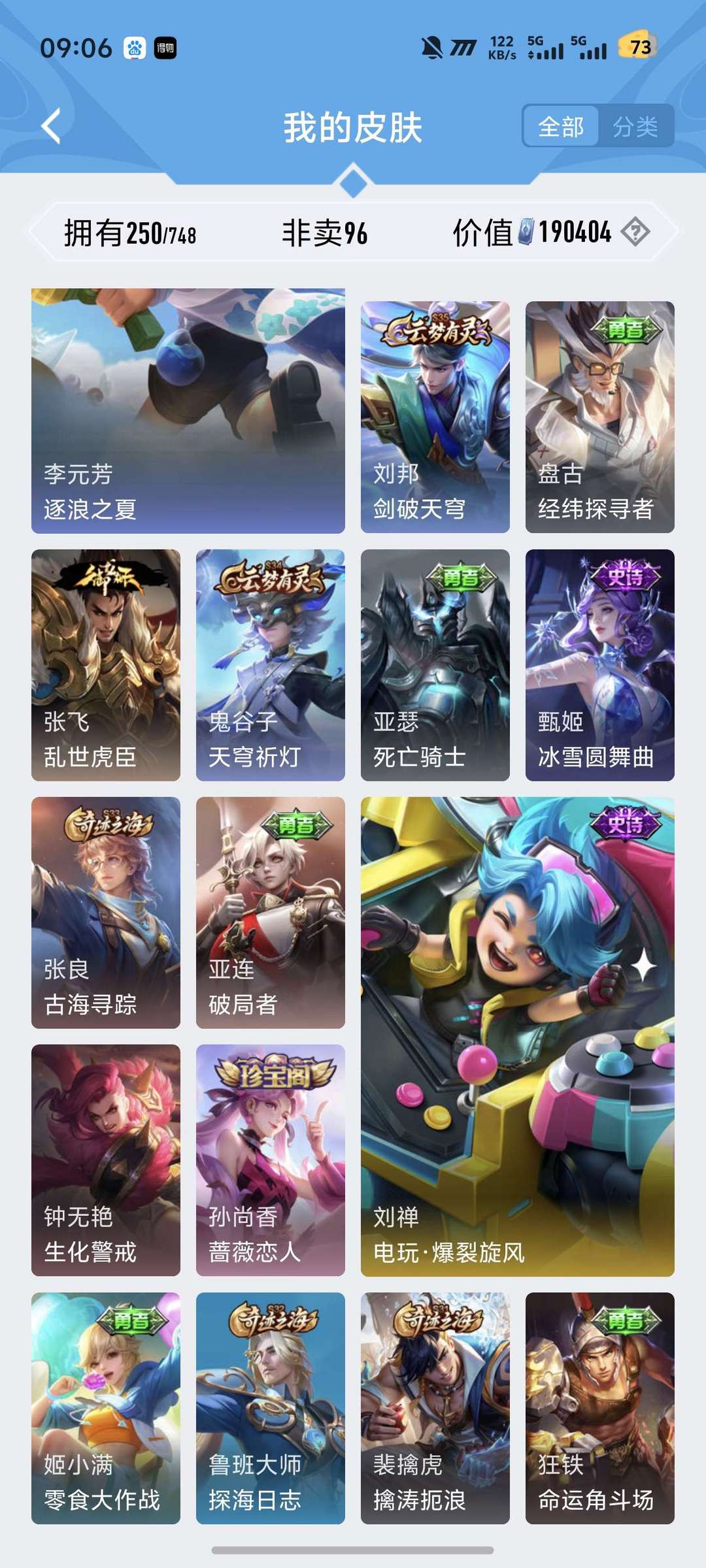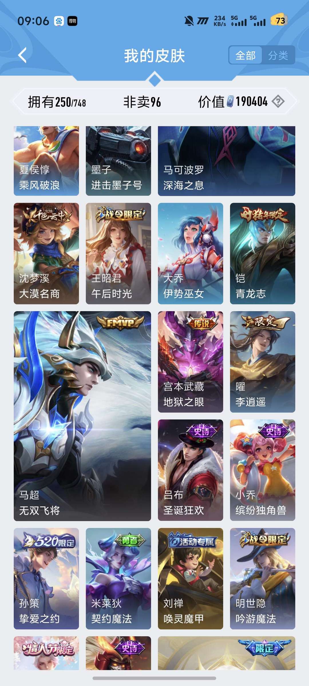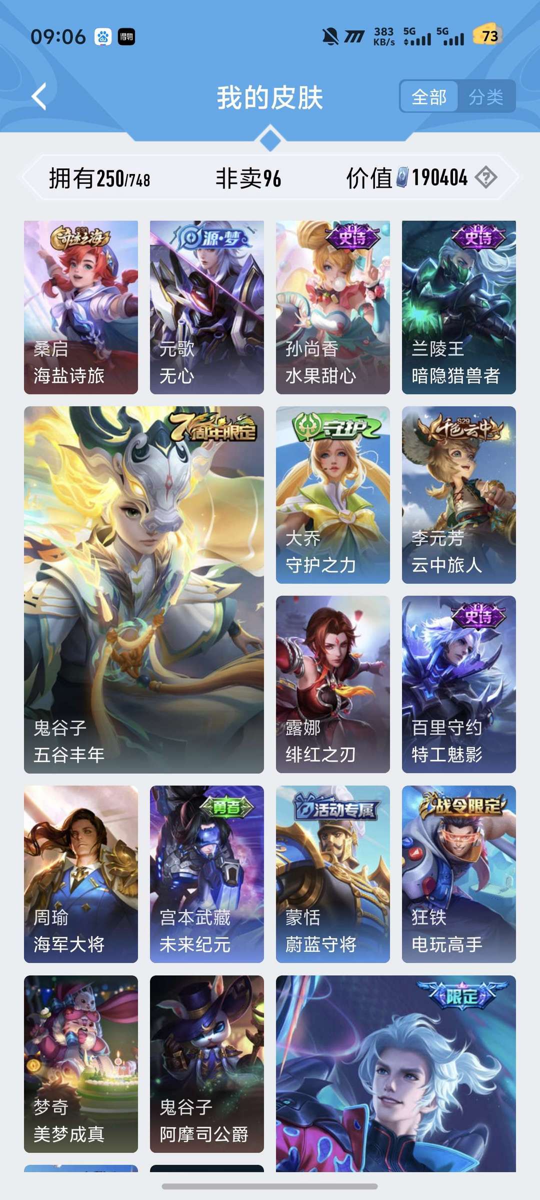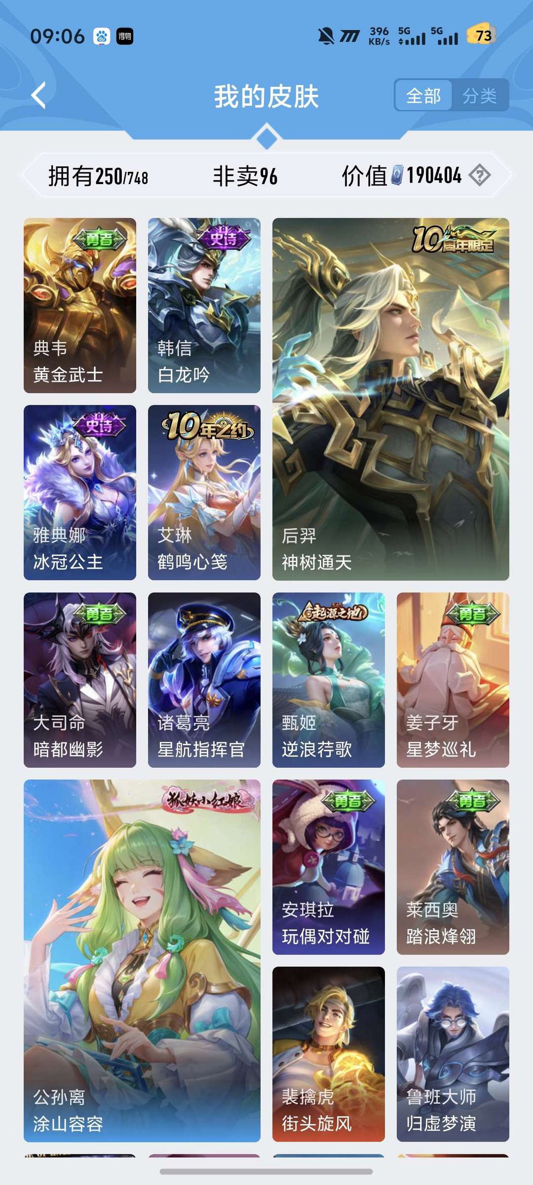 李白典藏 很多皮肤 可排位 禁止开挂账号已备案