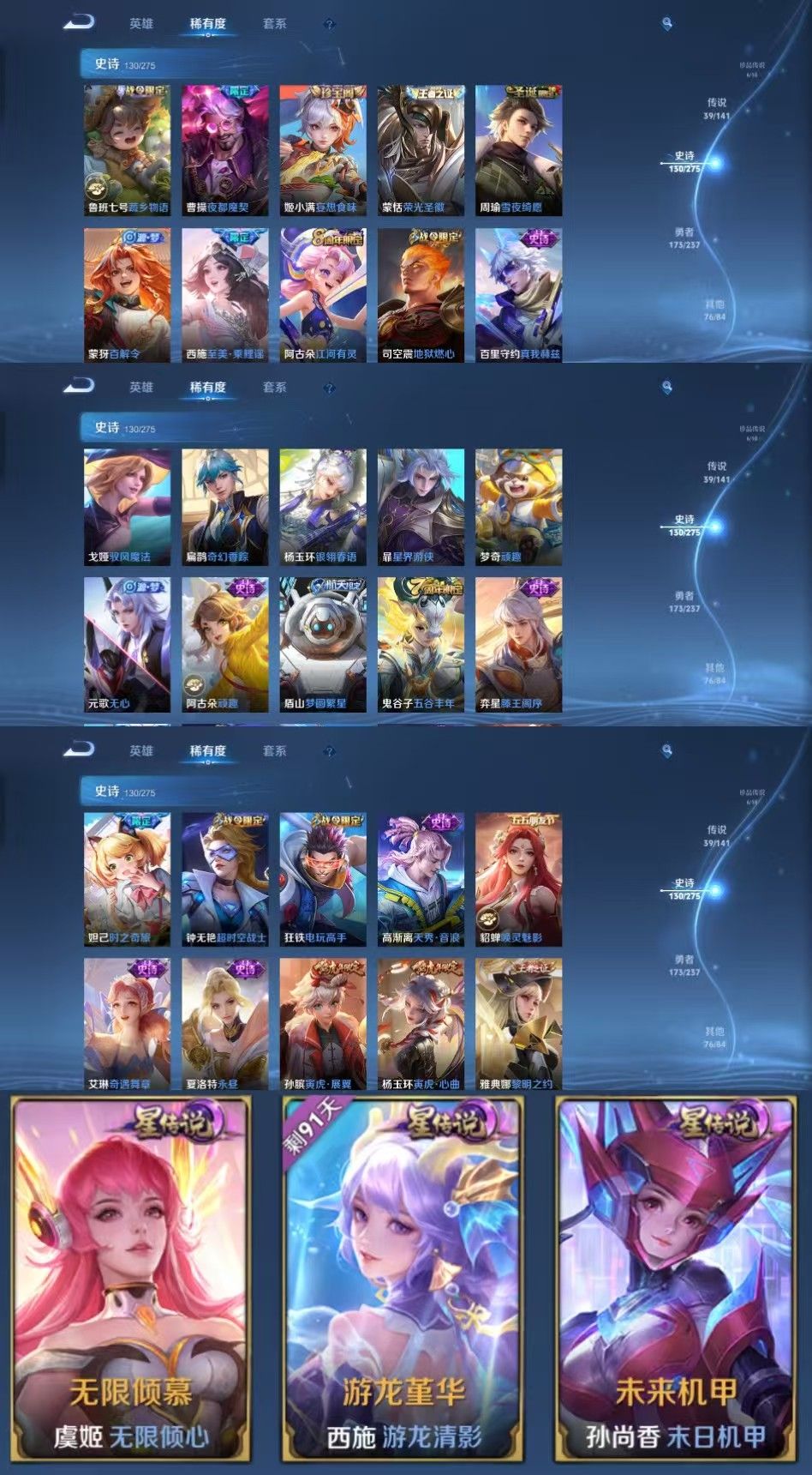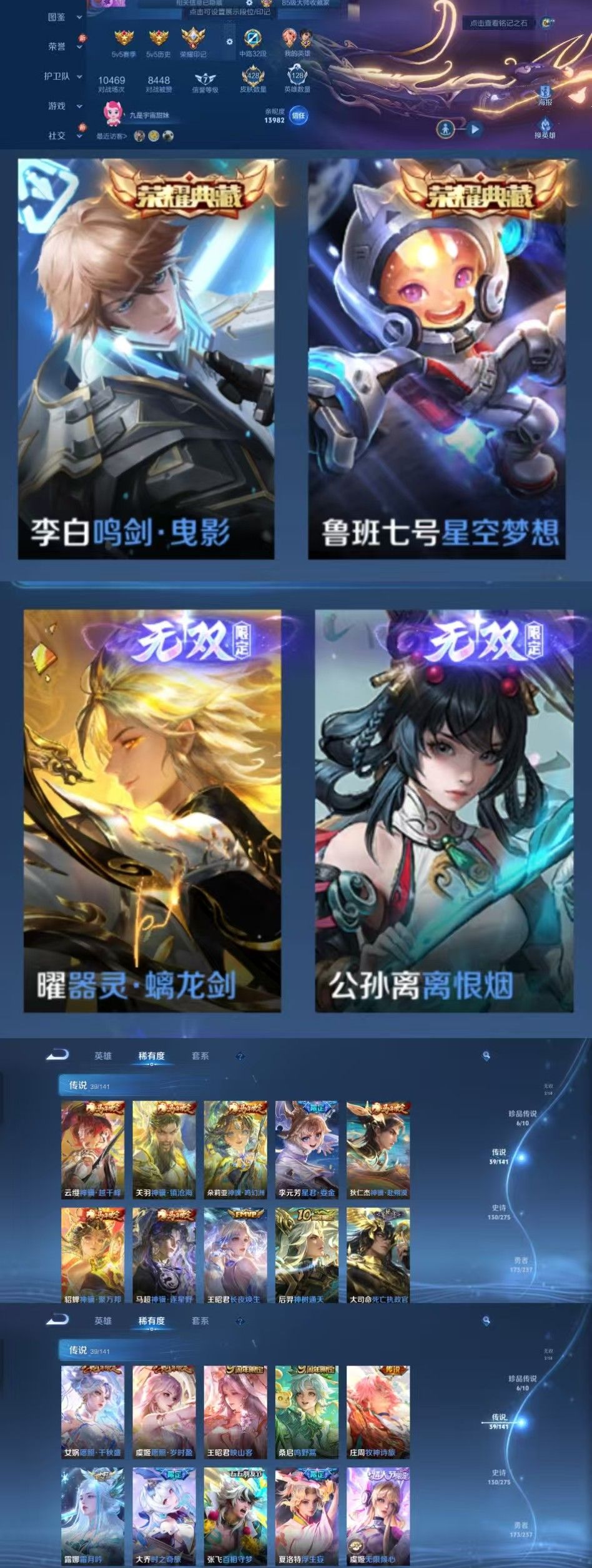 限制: 撤单率<49%才可租用此帐号装备描述:到时间不下拉黑处理永不解除,顶号机器会秒禁玩改密,顶号不仅拉黑还没得玩,赚三两块不容易,请理解谢谢。 ❤❤❤❤❤❤❤❤❤❤❤❤❤❤❤❤❤❤ 请勿开挂,挂机,送头,骂人,撤单后游戏等如有违规永久拉黑永不解除。 重置二级密码不要费劲了,号主每天都会上号查看,多行不义必自毙,人在做天在看,多做好事多自律,少做缺德事。 该号英雄128个皮肤428个,典藏2个,无双2个,珍品传说6个,星传说3个,传说39个,史诗130个,祝你游戏愉快~