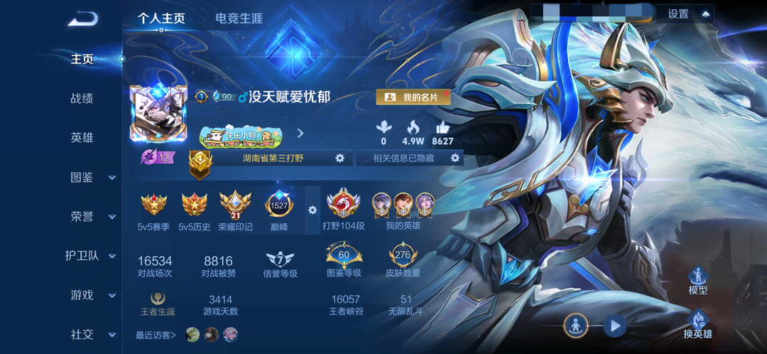 禁巅峰✨104段打野 历史大国分路✨历史大国服镜1.94W 历史大国服李白露娜嫦娥✨历史定榜巅峰第四