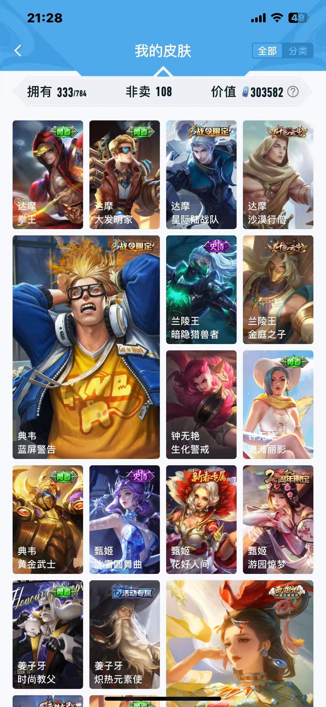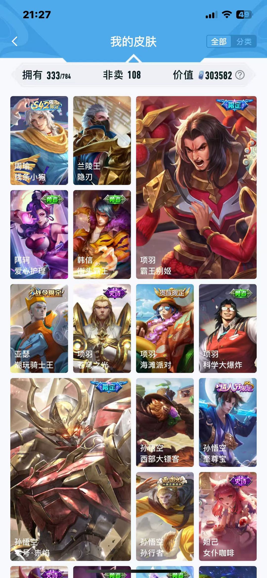 限制: 租号3次及以上 |装备描述:❥霸王别姬❥科学大爆炸❥潮玩骑士王❥爱心护理❥线条小狗❥至尊宝❥木偶奇遇记❥少女阿狸❥沉稳之力❥时之恋人❥禁止利用账号进行开挂、使用辅助违规软件诈骗等违规操作。喜欢本账号请点 ☆收藏☆ 方便下次租用,谢谢光临惠顾!