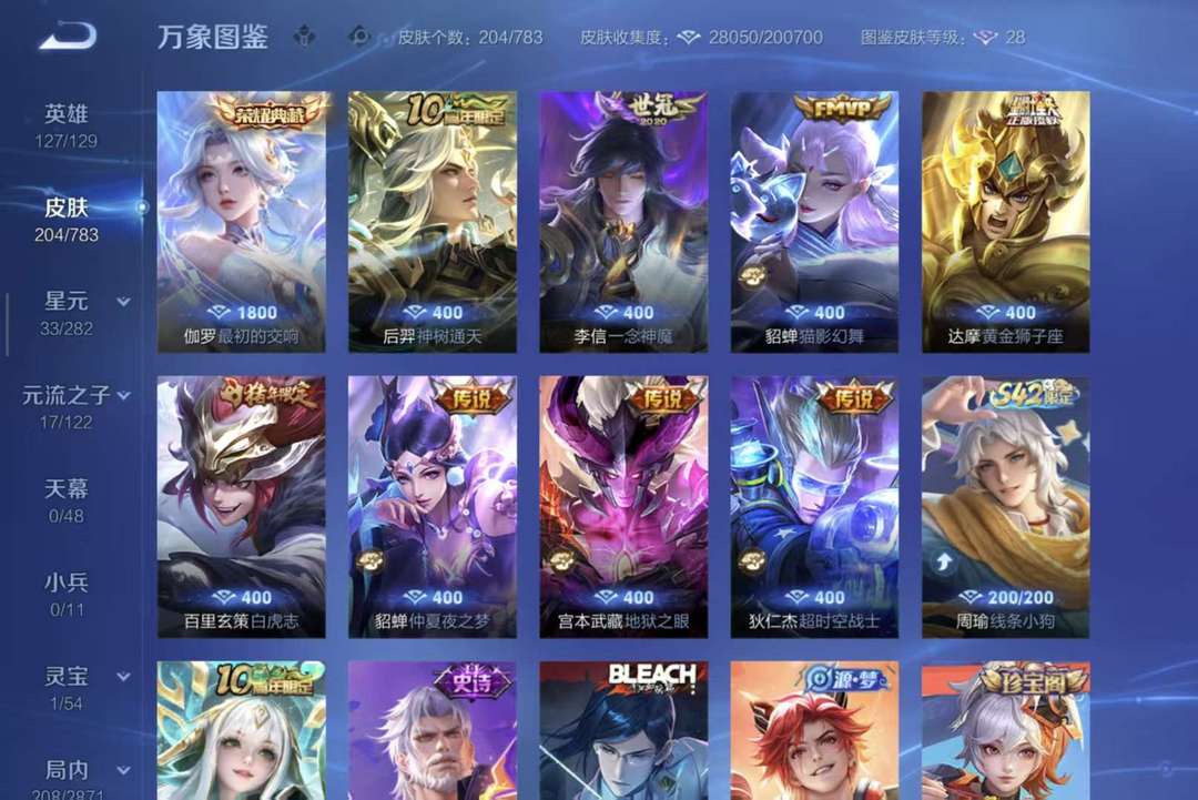 荣耀典藏最初的交响一念神魔貂蝉FMVP白虎志金色仲夏夜地狱之眼超时空战士