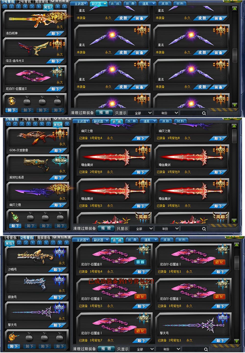 万古独尊✔️满阶拂晓✔️朱雀狂狮冲击✔️8金甲10镰刀8星流4魔剑5巨蟹✔️生化套装齐全✔️