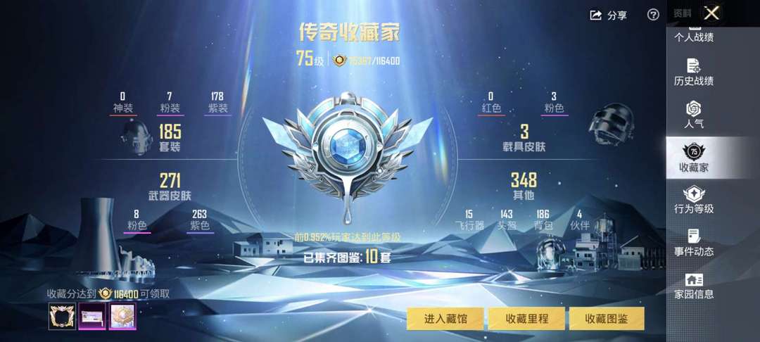 【特效枪: 8粉装:7载具:3。有狼的皮肤,地铁满天赋