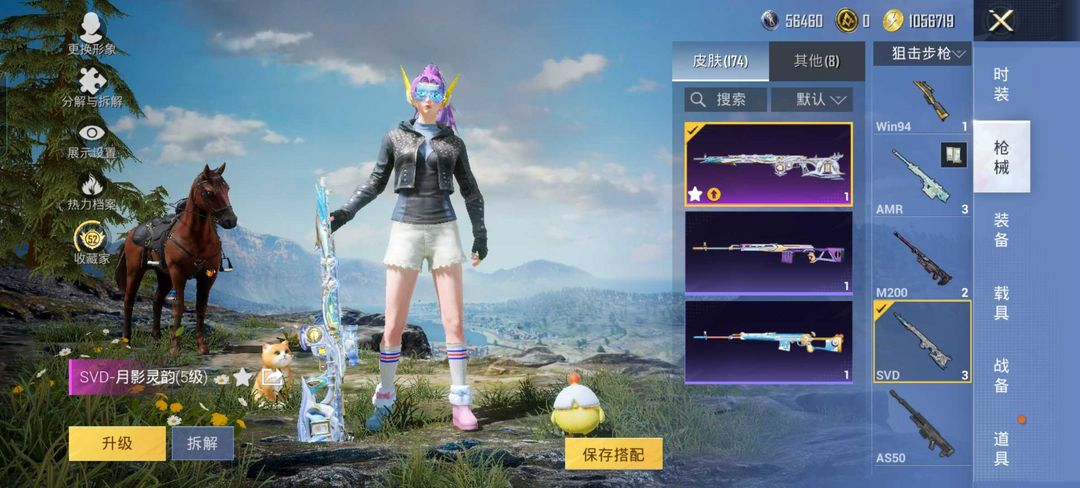 女号+幻彩电音+都市猎人+ACE32-萌骑漫游(5级)+SVD-月影灵韵(5级)满级