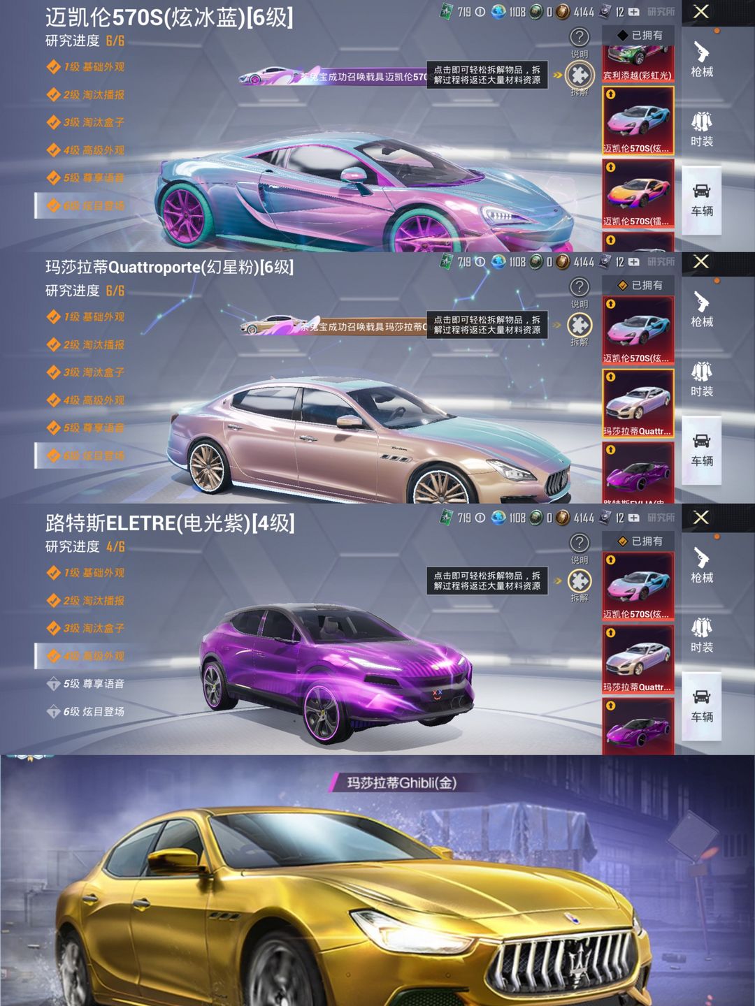 【牛逼公主号充值30万】满级玛莎/满级迈凯轮/4级路特斯/20万热力100粉26枪12车金玛莎