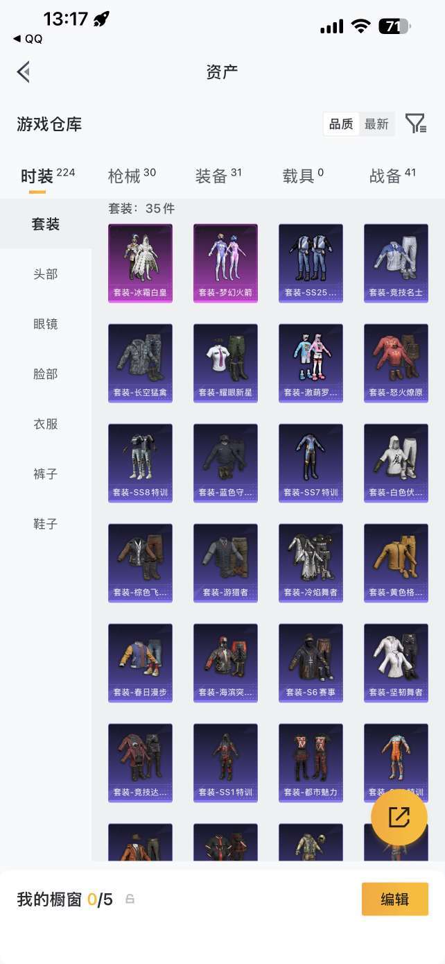 梦幻火箭一套,冰霜白皇套装,枪械皮肤三十个,装备三十个,战备四十件