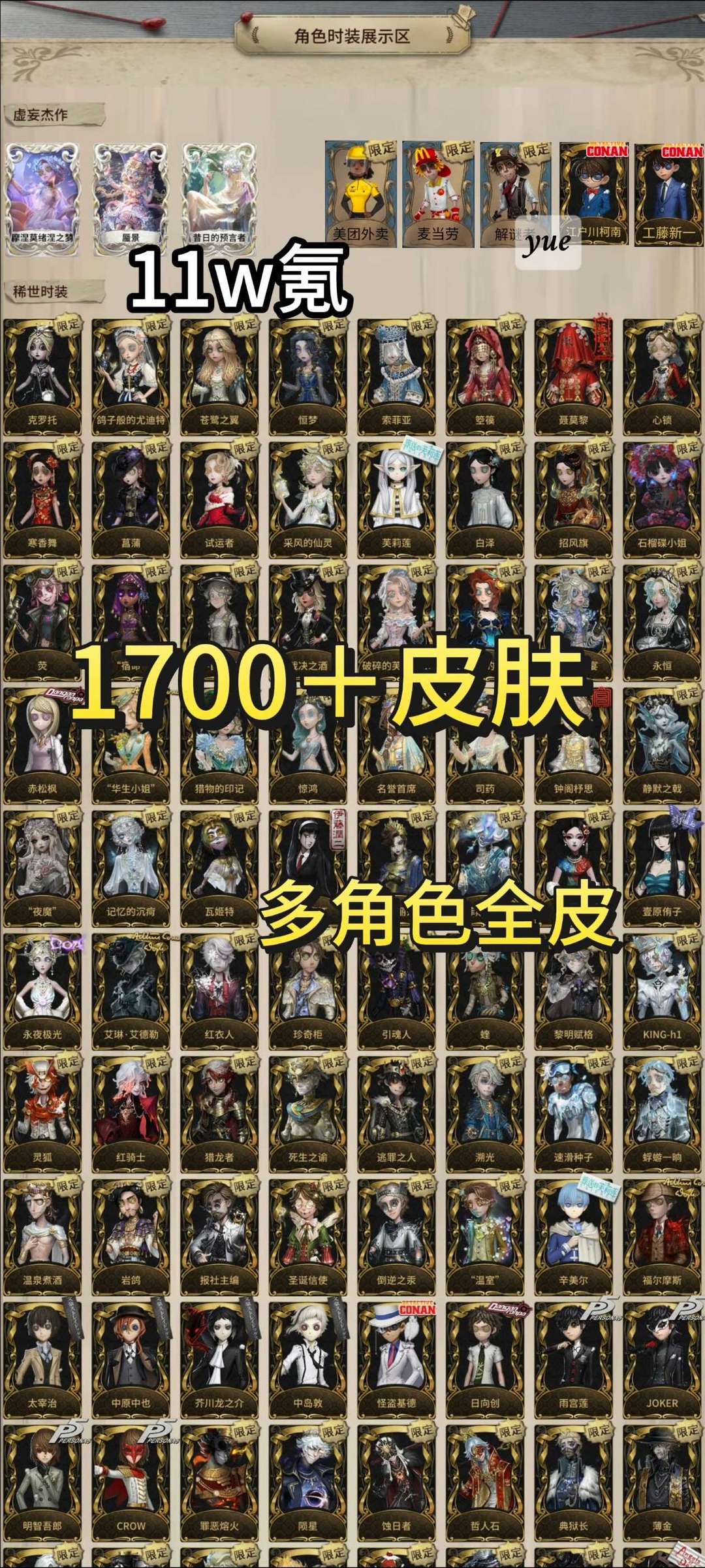 小女孩虚妄181金1707皮3虚妄11w氪⚡百金千皮共享⚡白真相美团金鸽子克罗托静默典狱长十三娘真理