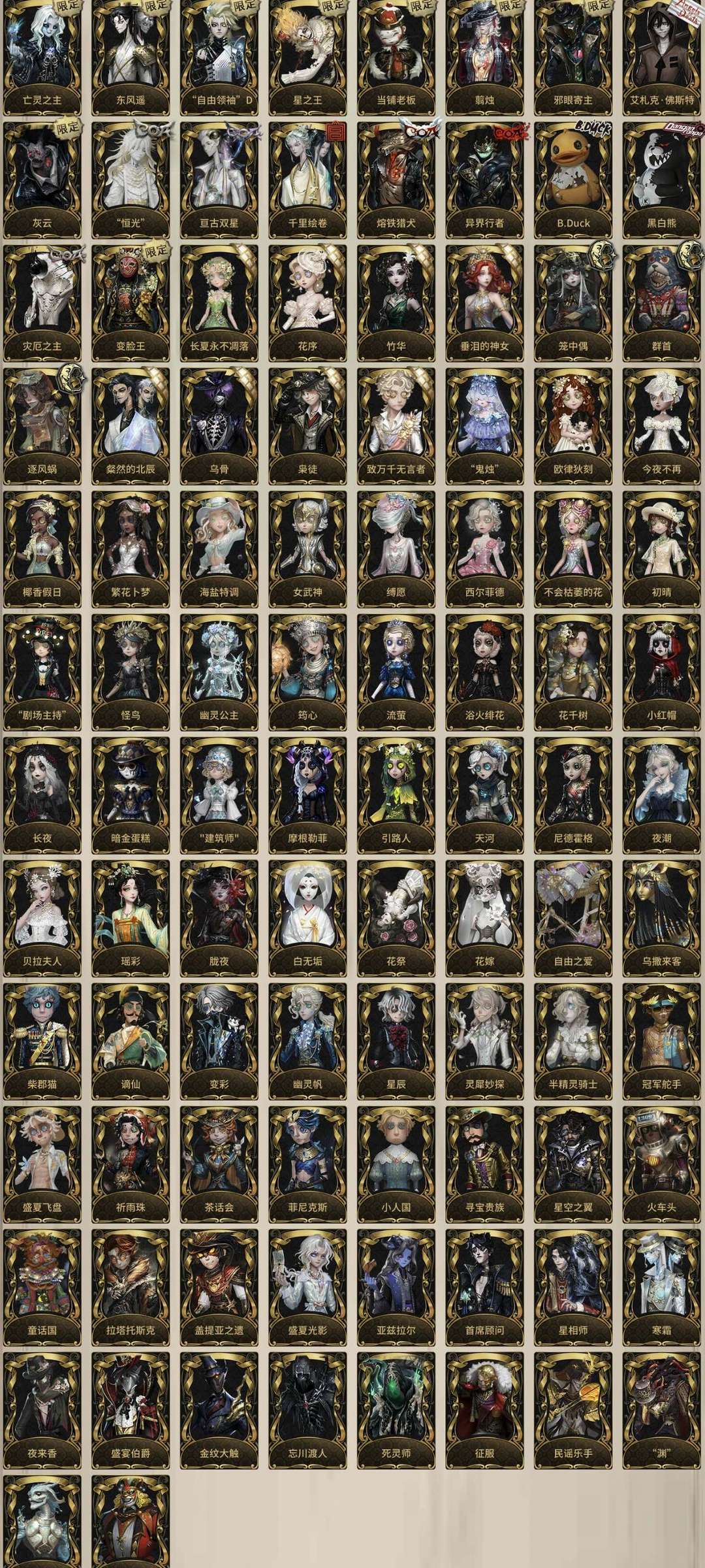 装备描述:⭐有十次共享红墨水,8个真理之下(๑•̀ㅂ•́)و✧ 老号6位id漂亮归宿多稀缺头像/框红玫瑰手杖~ 【好像很多宝宝喜欢勘探龙娘,这里说下都是全皮嗷!其他全皮忘记了,联动皮少了梦幻岛个别皮肤,其他基本全皮(◍•ᴗ•◍)❤】 (近期所有赛季金皮包括商城回声限时皮全购入!!!图鉴未更新) (❗❗加好友让你朋友主动加你就可以的) 新增:❗入殓师电竞皮挂件(全电竞) /杰克拉拉队员年限+挂件/小女孩虚妄/有兽焉非人哉全皮挂件/咒术情人节园丁佣兵宁芙/牛仔谪仙/ 群首 /深渊九全皮肤约瑟夫恒光(深渊九全收集)/ 大副蜉蝣一晌/ 女王蜂记忆的沉疴 /先知电竞皮BLK.ELI套装 /愚人金二限定陨星 /红夫人艾琳艾德勒(福尔摩斯全皮肤)/ 璀璨的孤狼+挂件❤️(有勘探全皮肤)/ 幻灯师金皮/ 囚徒二限金黎明赋格/隐士薄金/台球手金/象牙塔全买了/机械师电竞/葬送的芙莉莲全皮肤/ 机械师真理之下锁芯套/使徒溯洄花间晚祷 变彩/小女孩二限石榴碟小姐/纸嫁衣全皮-聂莫黎 陶梦嫣 肖驰 /调酒师限定金球全皮/ 逃脱大师限定金球的仨皮肤-死生之谕/ 蛙里奥/莎莉 zfb蓝花火古董商/ 拉拉队员oph 杂货商自由之爱/ ib联动全皮 心理学家恒梦/病患溯光/蜡像师星相师/ 昆虫冠军皮踏莎行/破轮冠军皮破阵子/ kfc骑士 KFC渔女 KFC调香师/善忘的海马体(雕刻推理)/不合时宜的危鲁弗 /采风的仙灵/ 情人节wu女机械师金皮 /囚徒-OPH-LUCA套装 /孽蜥-耶梦加得/ 福尔摩斯全套--华生小姐套 福尔摩斯 艺术品商人 华生医生 雷斯垂德探长