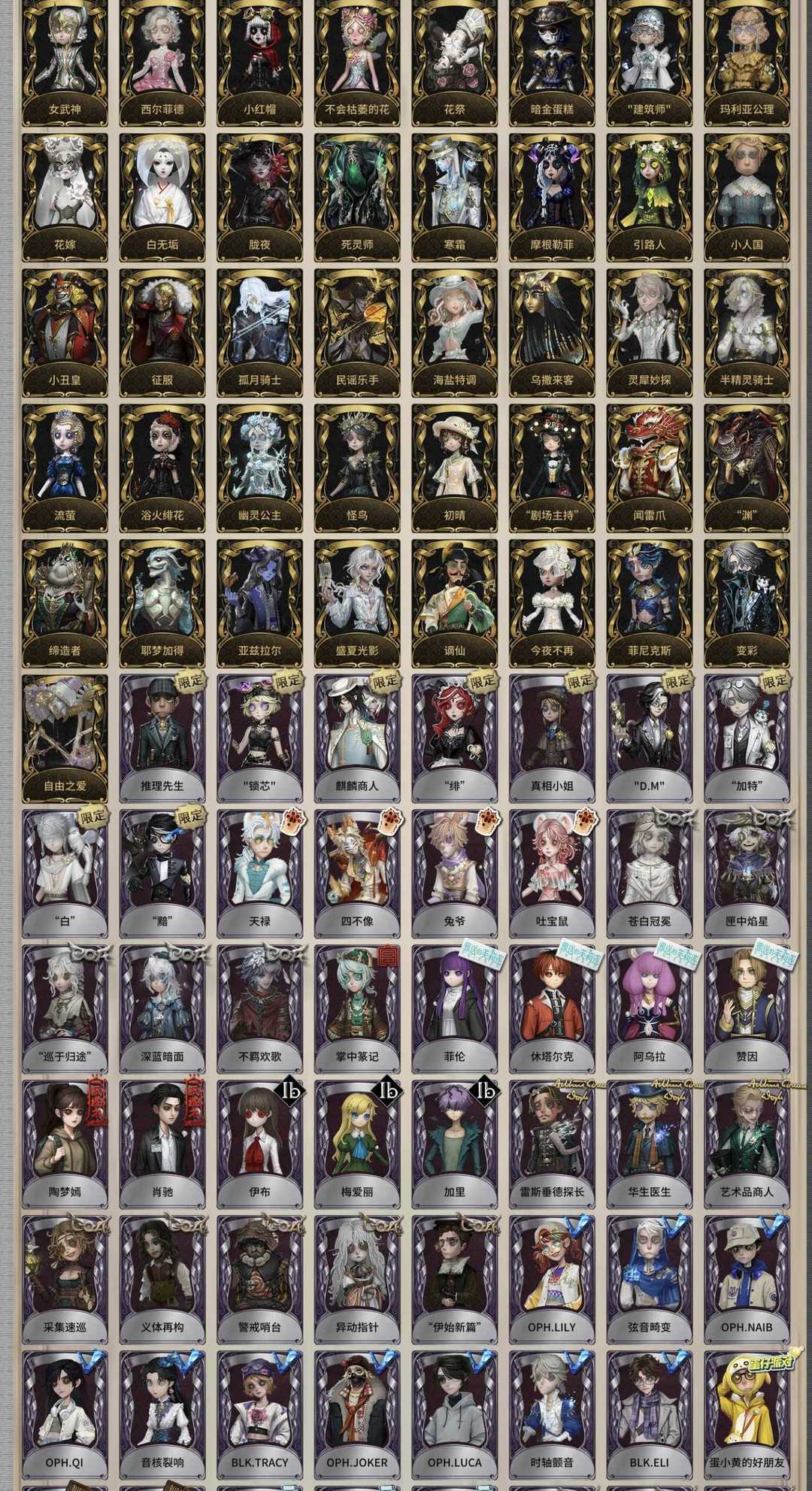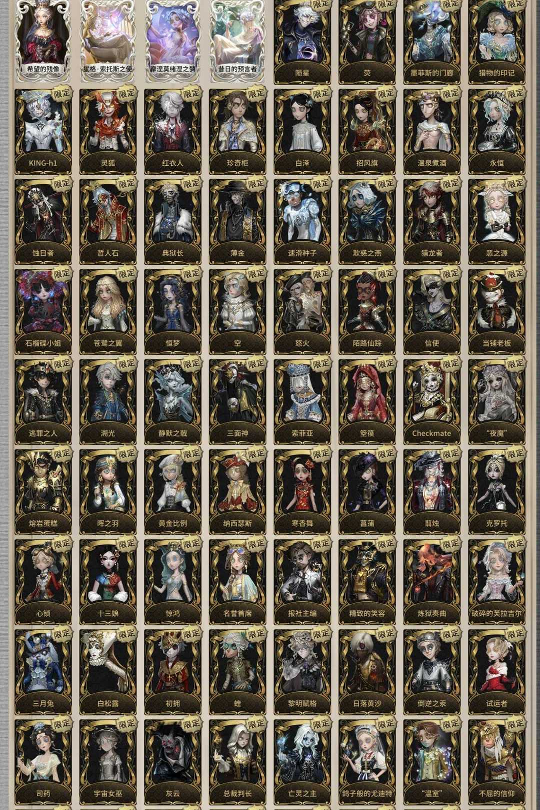 装备描述:恶意撤单退款秒顶拉黑,租赁的就是图中账号,会不定时上新皮肤,禁止一切不文明租号行为,如发现会立即顶号。 ⭐️亮点皮肤:翡色云雀之歌,小女孩虚妄,女王蜂记忆的沉疴,黎明赋格,陨星,于此岸赴宴,joker,crow,希望的残像,犹格.索托斯之使,DM,白,黯,加特,祭司绯,宿伞真理之下东方的麒麟,真相小姐,推理先生,克罗托,十三娘,总裁判长,陌路仙踪,三月兔,当铺老板,初拥,白松露,日落黄沙,炼狱奏曲,蛙,夜魔,checkmate,黄金比例,江户川柯南,工藤新一,伊莎贝拉,赤松枫,kingh1,灵狐,珍奇柜,墨菲斯的门廊,穆希卡,纳西瑟斯,熔岩蛋糕,三面神,静默之戟,怒火,空,恶之源,欺惑之燕,温泉煮酒,典狱长,基德,白泽,红衣人,菖蒲,日向创,鸽子般的尤迪特,荧,逃罪之人,夜行枭,索菲亚,箜篌,速滑种子,晖之羽,心锁,裁决之酒,蚀日者,川上富江,东风摇,试运者,寒香舞,信使,苍鹭之翼,壹原侑子,哲人石,倒逆之汞,猎物的印记,名誉首席,入殓师温室,骑士红骑士,黄衣之主灾厄之主,蜘蛛不息载械,冒险家报社主编,气象学家采风的仙灵,小说家福尔摩斯,弓箭手不合时宜的危鲁弗。 文豪野犬,杀戮天使,约定的梦幻岛,伊藤润二,疯狂的外星人,剪刀手爱德华,四月一日,弹丸论破一二三弹,名侦探柯南,肯德基kfc,B.duck,罗森,Line Friends布朗熊可妮兔,时光代理人,镰田光司,三丽鸥,非人哉以上全满配。女神异闻录一二弹全满配,福尔摩斯全满配,真理之下全齐。66限定时装22联动金,虚妄有祭司和黑白熊的随身物品。 紫皮亮点:宿伞东方的麒麟,摄像师DM,先知白,先知黯,入殓师加特,祭司绯,真相小姐,推理先生,小六,美乐蒂,库洛米,大耳狗,瑞吉儿,程小时,七海千秋,雾切响子,罪木蜜柑,猩红新娘,金,剪刀手爱德华,佐仓双叶,白孔雀,异动指针,杂技演员李天辰,宿伞刘枭,古董商乔苓,囚徒OPH.LUCA。 归宿72w:迷雾山庄,贝克街221B,沉默的宫殿,魅影古堡。 典藏大家具:一念之间,陨落的王座,游戏桌等。精装别墅